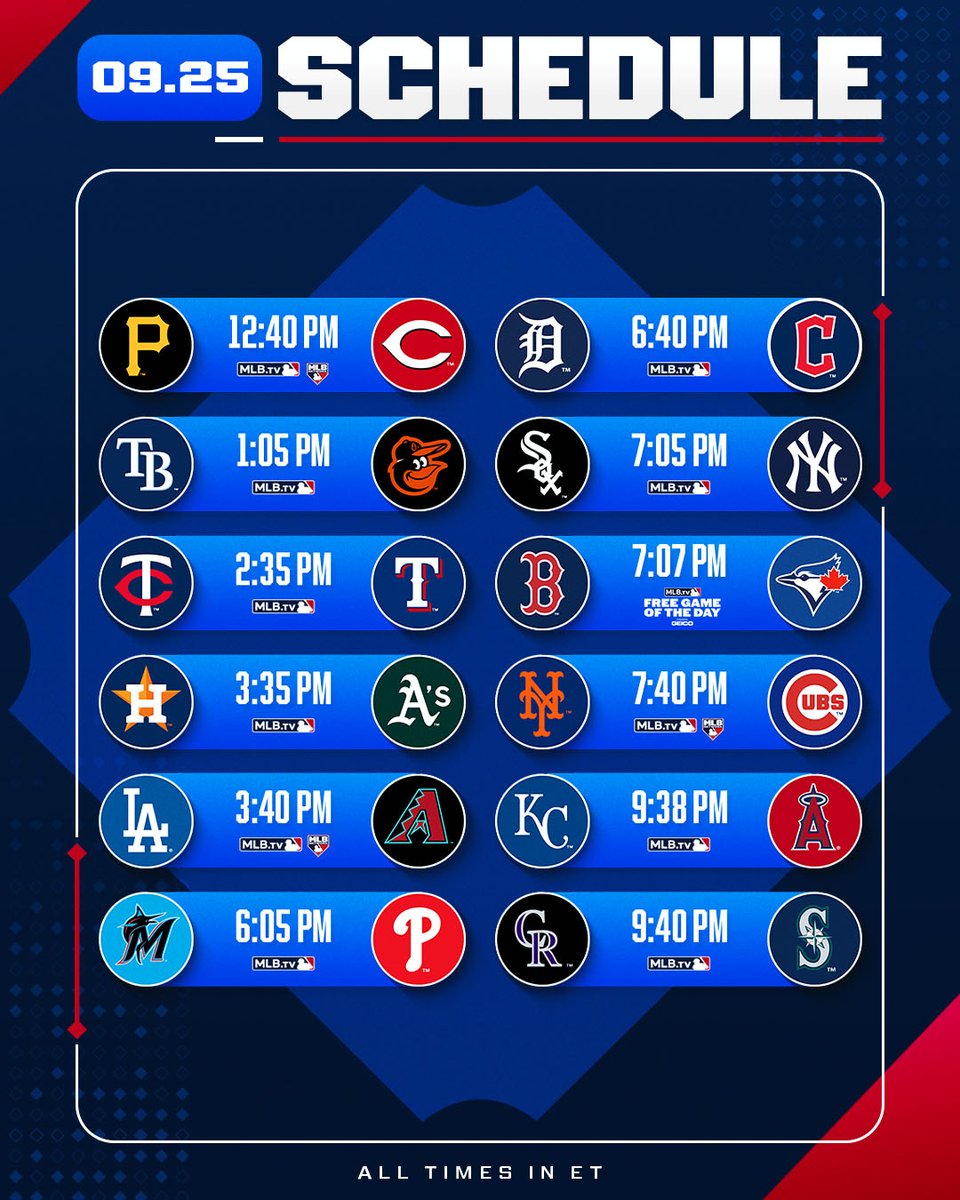 MLB官方X账号发推特报道,道奇队有望锁定国联西区冠军;水手队将冲击七连胜;弗拉姆伯·瓦尔迪兹、山本由伸、卡洛斯·罗冬、布雷安·贝罗和诺兰·麦克莱恩将先发登板。周四棒球赛事蓄势待发⚾