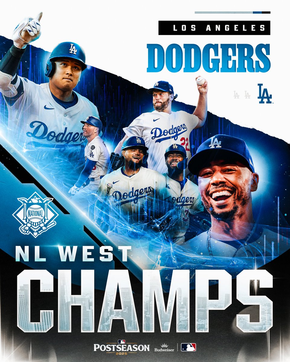MLB官方X账号发推特报道,道奇队在过去13年中第12次夺得国联西区冠军!#CLINCHED