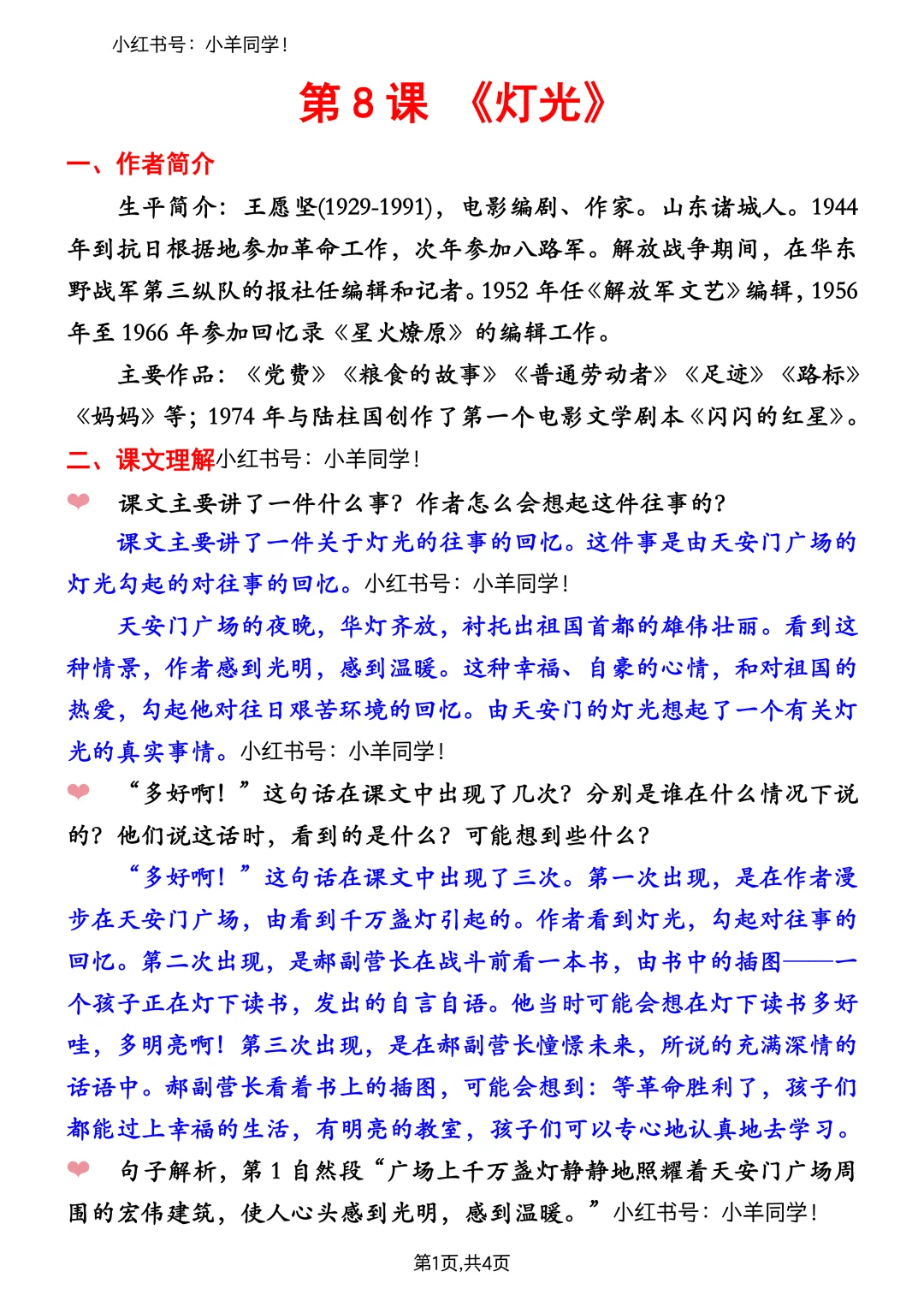 六年级上册🔺第8课《灯光》