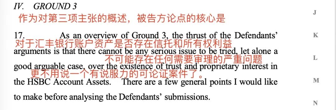其中,第三项理由为,宗馥莉方主张宗氏三兄妹无法证明其对汇丰银行账户资产拥有信托受益权或财产权益。