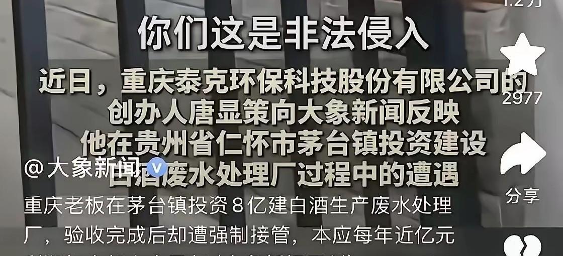 重庆老板唐显策响应茅台镇招商号召,砸8亿建成白酒废水处理厂,刚有收益就被当地部门