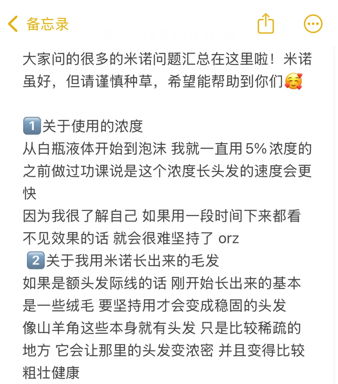 之前分享过米诺很多次啦,但是有一些新来的小宝问我“额头为什么有那么多碎发,好有氛围感的样子”,因为我已经用米诺地尔超过2年了!从蔓迪最早的白瓶到精灵瓶再到现在的泡沫剂,什么质地的我都用过了,也从之前的大脑门到拥有现在的胎毛刘海(p3-p4使用前额头真的比较大,那时候爱留的发型都是这种遮挡额头的) 我很满意现在的发际线!!给大家分享我是怎么涂的,还有我长出来的头发是什么样的(p9-p10)~