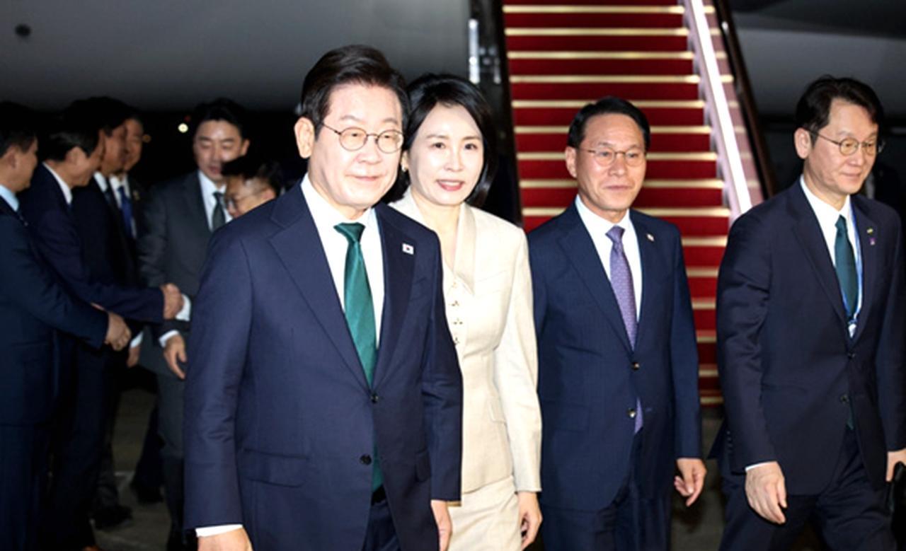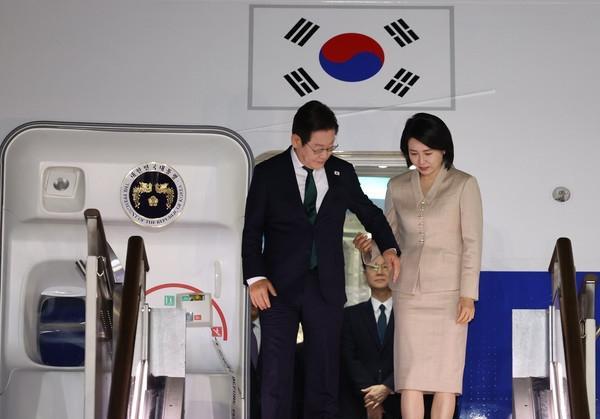 韩国第一夫人金惠景结束联合国大会,和老公李在明已经抵达首尔了。 9月26日晚,韩