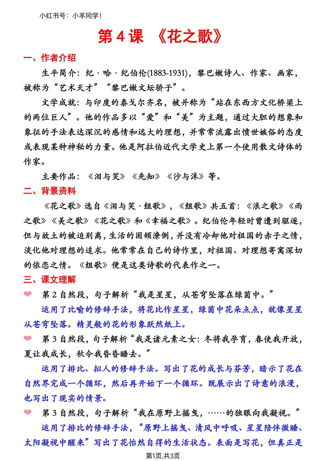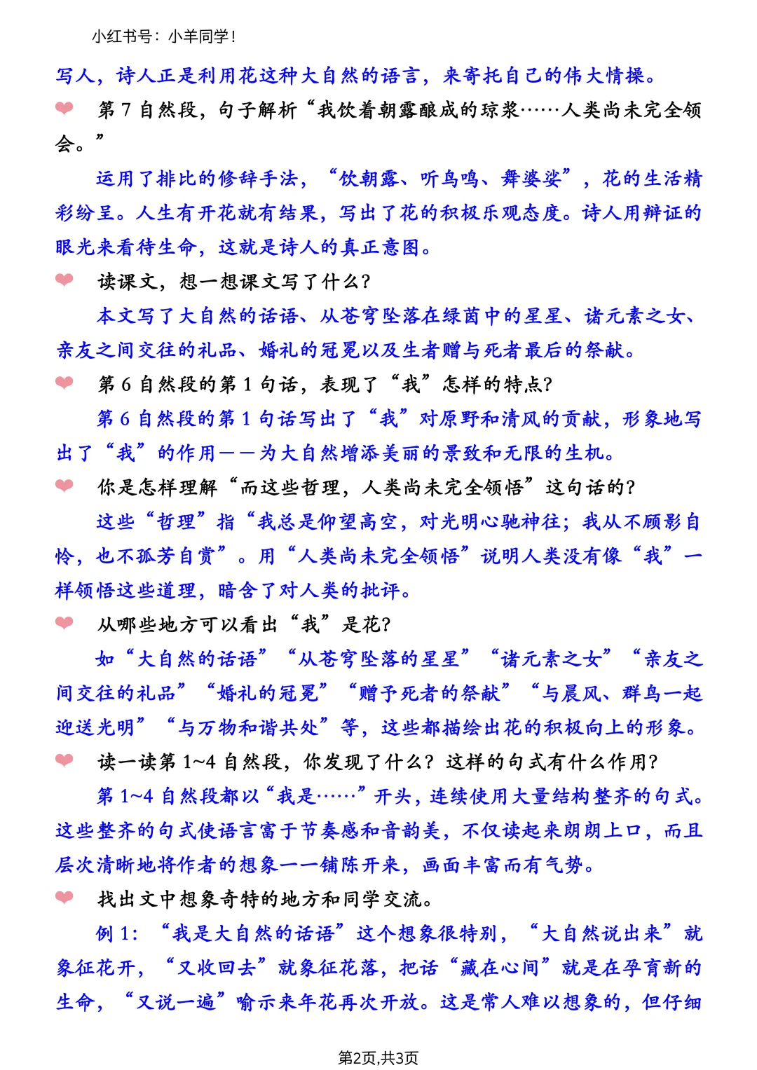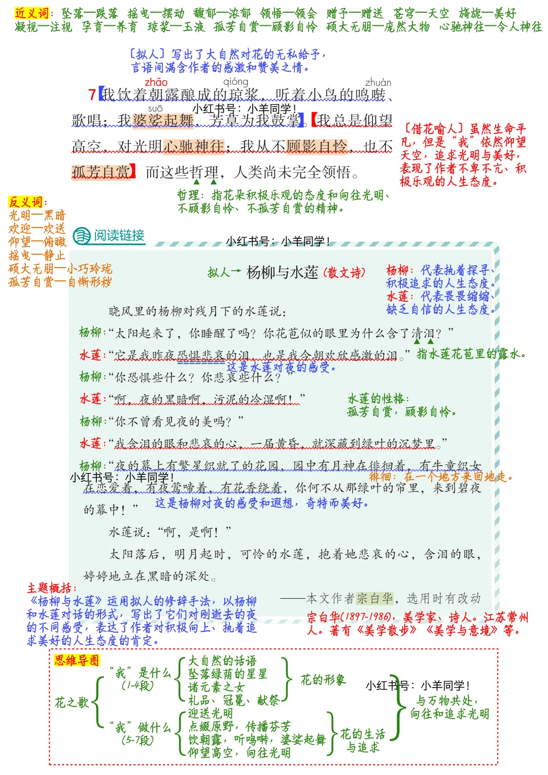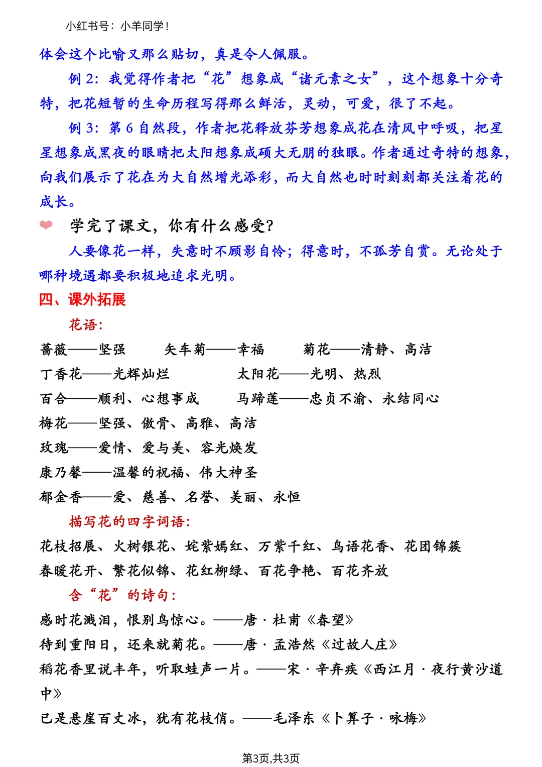 学习目标: 1、朗读课文,感受语言的节奏感和音韵美。 2、边读边想象画面,能说出对花的各种形象的理解。(重点) 3、感受并交流课文和“阅读链接”中想象奇特的地方,体会作者积极向上的人生态度。(重点)