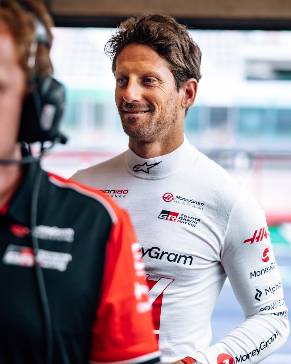 F1官方推特账号发推特报道,罗曼·格罗斯让与@HaasF1Team度过了特殊的周五。#F1