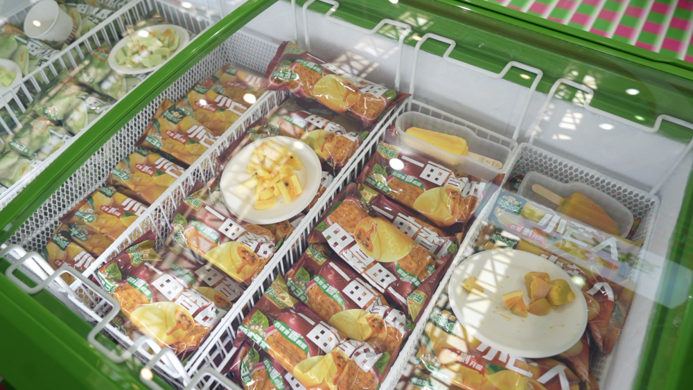 在东北大板品牌展区,蜜瓜、芒果、百香果造型的水果味冰淇淋吸引了众多客商品尝,该系列产品远销新西兰、加拿大、马来西亚、新加坡等国家和地区。