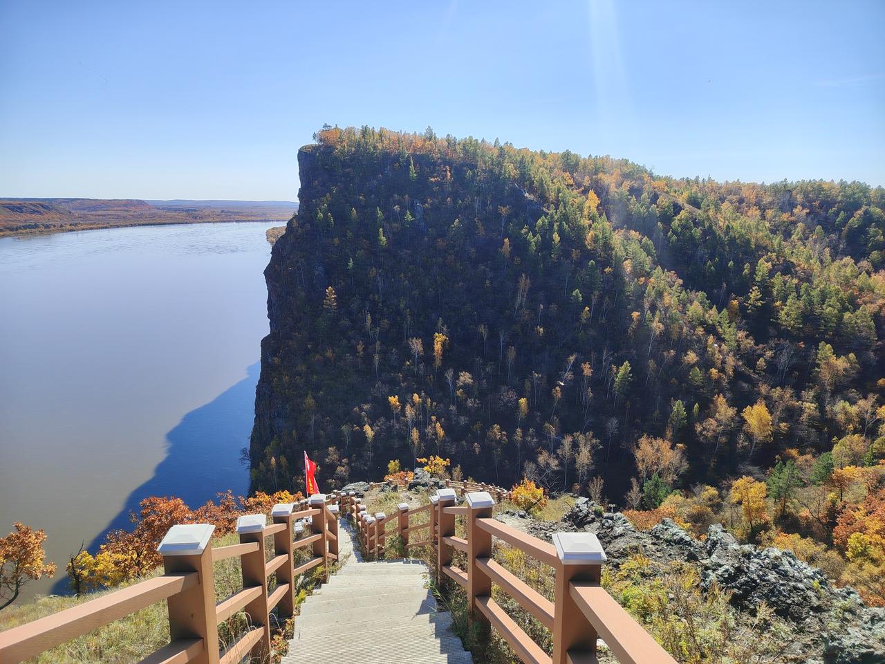 中国画山,位于黑龙江省大兴安岭呼玛县境内,山下是黑龙江,江对岸是俄罗斯。 今天和老公带着两个老妈去了画山,画山的秋景真的美极了,大自然的鬼斧神工真的是人工雕琢无法比拟的,拍了一些图片给友友们欣赏,十月一小长假想出门游玩又不喜欢看人头的就来画山吧。中国画山风景 黑龙江画山 国画山自驾游