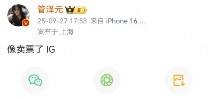 真给管哥救活了!管泽元在iG首局落败时更博称:iG像卖票了!