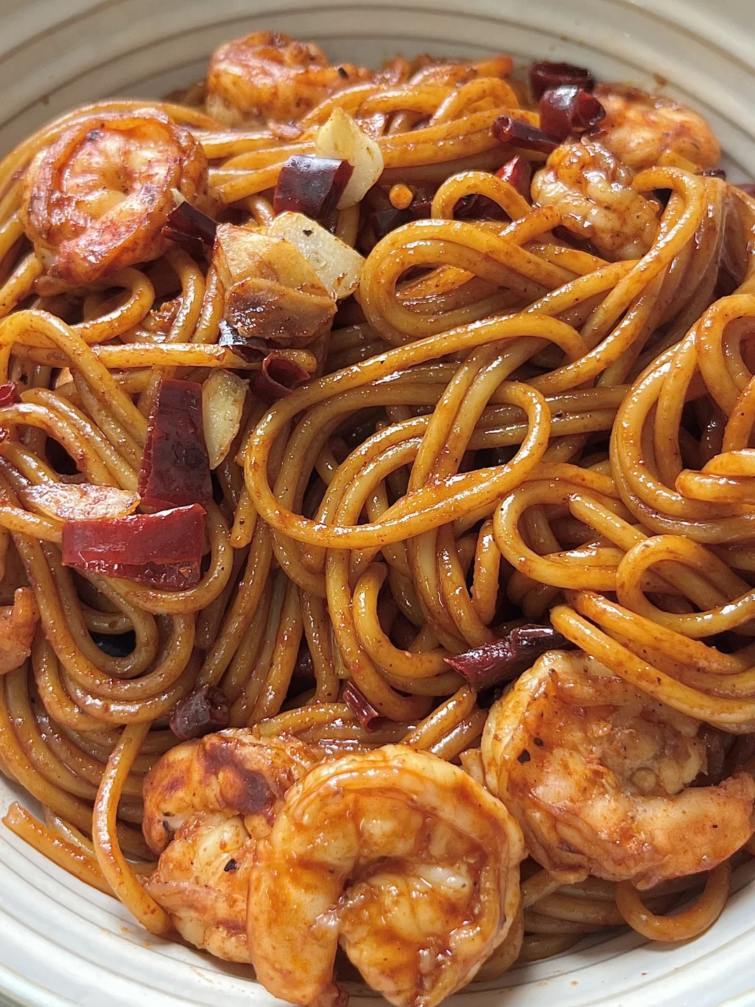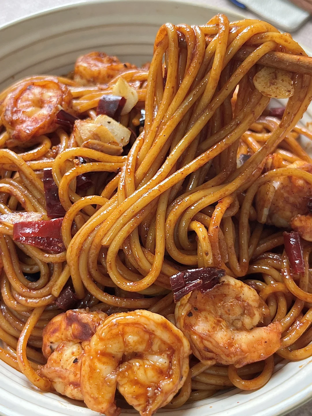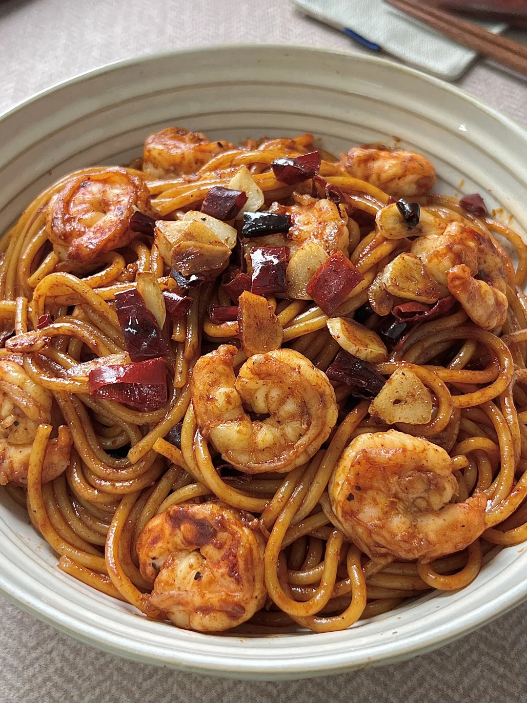 蒜香辣虾仁意面🍝太太太好吃了🤤连吃两天❗️