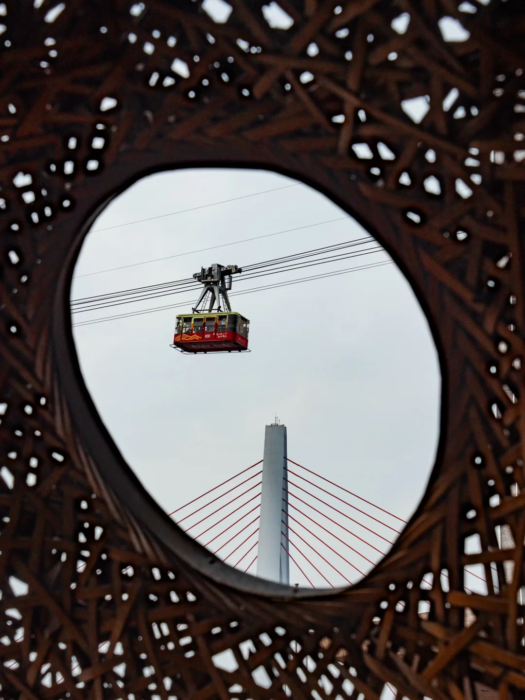 重庆不愧是8D魔幻城市,真的太魔幻了!它独特的山城地形,诞生了一些让人意想不到的交通工具。 比如老重庆人口中的「魔幻三杰」:长江索道、皇冠大扶梯、凯旋路电梯。 如果你来重庆,想体验下重庆本地人的生活,感受下8D魔幻城市的独特魅力,那一定要来体验一次「魔幻三杰」。 . 第一站:乘坐长江索道 长江索道是重庆本地人的交通工具,全长1166米。建议来重庆旅游的朋友一定要体验一次,这将会是你旅行中非常宝贵难忘的一次经历:乘坐长江索道,可以看到脚下奔涌的江水,迎面而来的是山城震撼城市景色,还能俯瞰湖广会馆的独特面貌,远眺重庆「双子塔」、轻轨等经典地标。 . 坐完长江索道,可以去旁边的文创店带一些山城特色的文创礼品回家,像是长江索道定制款冰箱贴,不管是自留还是送朋友都是很不错的选择哦~ 现在长江索道也成了许许多多来重庆旅游的人必打卡的网红机位。 . 这里推荐几个长江索道的打卡点: 1.白象居窗景,可以拍到人物和长江索道的合影。 2.在东水门长江大桥上,可以拍到长江索道、白象居和湖广会馆的同框照。 3. 在开埠遗址公园,从圆窗里可以拍到长江索道和大桥的合影。 . 第二站:皇冠大扶梯 乘坐皇冠大扶梯开启一场奇幻的“地下穿行”之旅,是每个来重庆游客推荐打卡的“重庆式浪漫”。皇冠大扶梯全场112米,52.7米落差,倾斜30°,是亚洲第二长的坡地大扶梯。乘坐皇冠大扶梯,头顶是透明的玻璃,仿佛走入了时光隧道一样。 . 第三站:凯旋路电梯 凯旋路电梯是梯坎之城穿梭梯,这部链接着重庆的下半城凯旋路和上半城新华路的凯旋路电梯,可以说是重庆这座城市非常有意义的建筑之一,很值得来体验一次。 . 来山城旅游,不想爬坡上坎太费腿?推荐乘坐特色线路熊猫巴士,串联了很多热门景点:重庆动物园、半岛小渡、洪崖洞、三峡博物馆、李子坝轻轨站、天台131等热门景点,是“水陆空”一日游精品动线。 晚上还有魔幻的夜景巴士,可以沉浸式观赏两江四岸璀璨灯海,感受山城8D魔幻地形的视觉震撼哦~ .