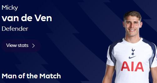 英超官方:范德芬当选热刺1-1狼队球迷票选全场最佳球员