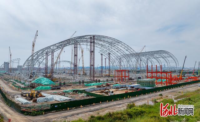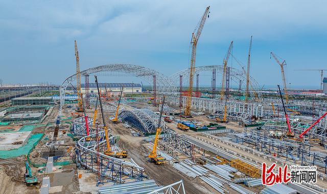 9月21日,曹妃甸矿石储运物流项目建设现场,工人们正在进行料棚搭建。