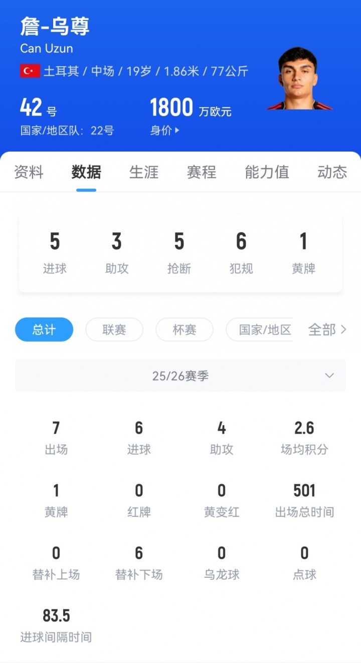 本赛季初乌尊就迎来了大爆发,他在德甲前5轮比赛中每场均打入1球,并且一共送出了3次助攻,在球队欧冠5-1大胜加拉塔萨雷的比赛中,乌尊也打入了一粒漂亮的进球。目前乌尊的德转身价为1800万欧元。