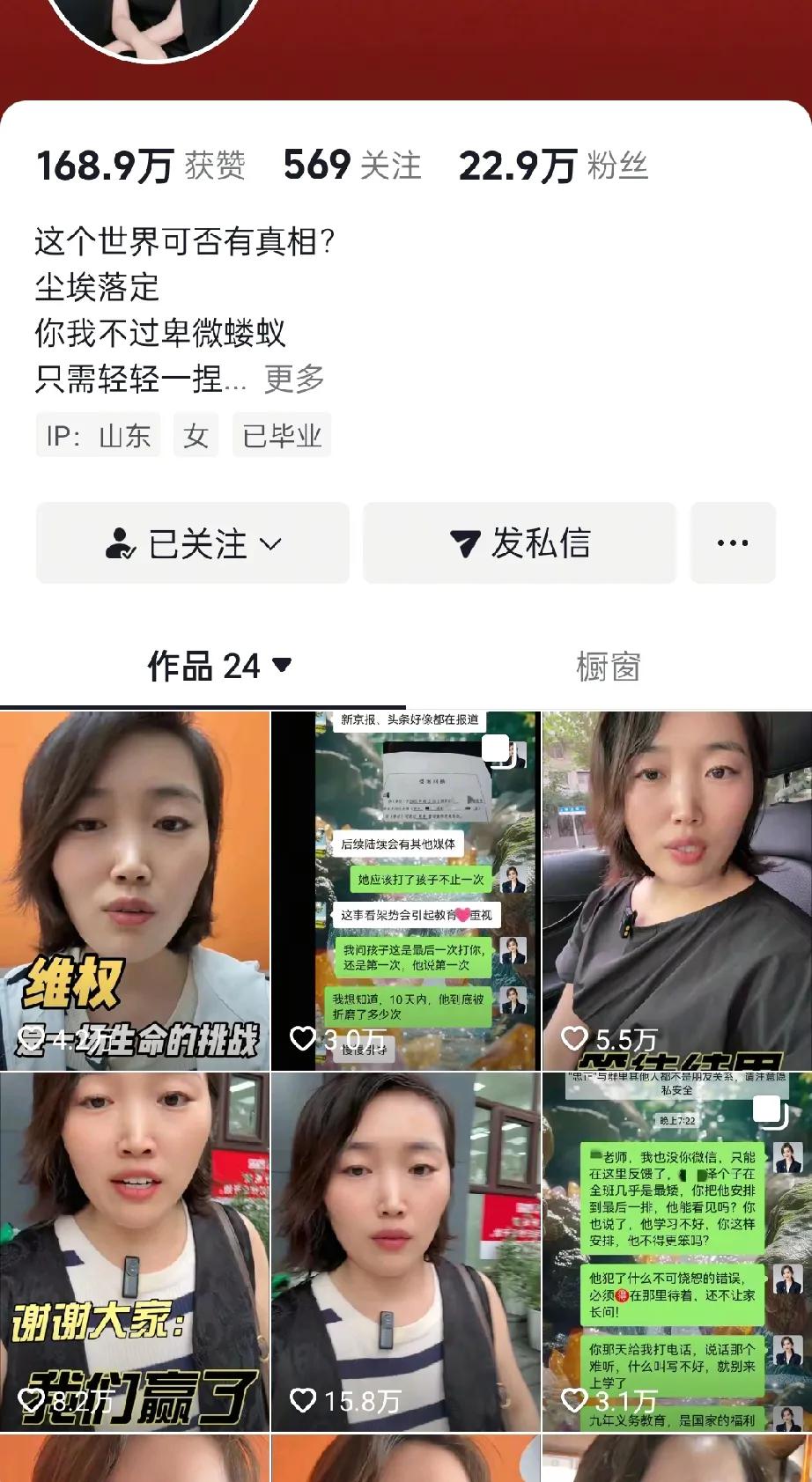 有网友评论说这位妈妈儿要一条道走到黑吗 ?官方调查结果已经出来了 ,这位妈妈又发布了一个视频 ,说他不满意官方发布的公告,这位女士说她和孩子爸爸在观看监控视频的时候 ,学校里把老师打他孩子的视频 ,放慢了八倍的速度来让他们观看, 从他们的机位来看 ,老师打的就是孩子的脸 ,你们和校领导以及律师团队一起观看的视频, 那为什么当时不去反驳呐 ?并且调查组还调查了70多位在校师生人员 ,这到底是对哪方面不满意呢 ? 真是喝醉了不扶墙 ,就服你一个 ,那么请问当初你说的老师啪啪啪啪啪的去打孩子的脸,这不是明摆着在造谣吗, 人家放慢了八倍的速度让你去看 ,你也没看到啪啪啪啪的动作呀 ,事已至此了 ,是时候该收场了 。 另外让自己有一份知觉 一份反省吧, 你是怎样去影响孩子的 ,又给孩子怎样的环境和示范呢 ?