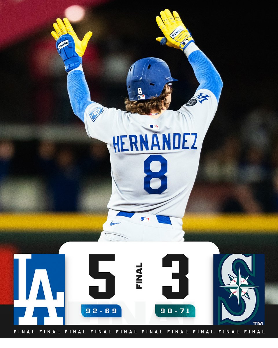 MLB官方X账号发推特报道,强大的后援投手群和凯克·埃尔南德斯第九局的两分打点二垒安打帮助道奇队取胜!