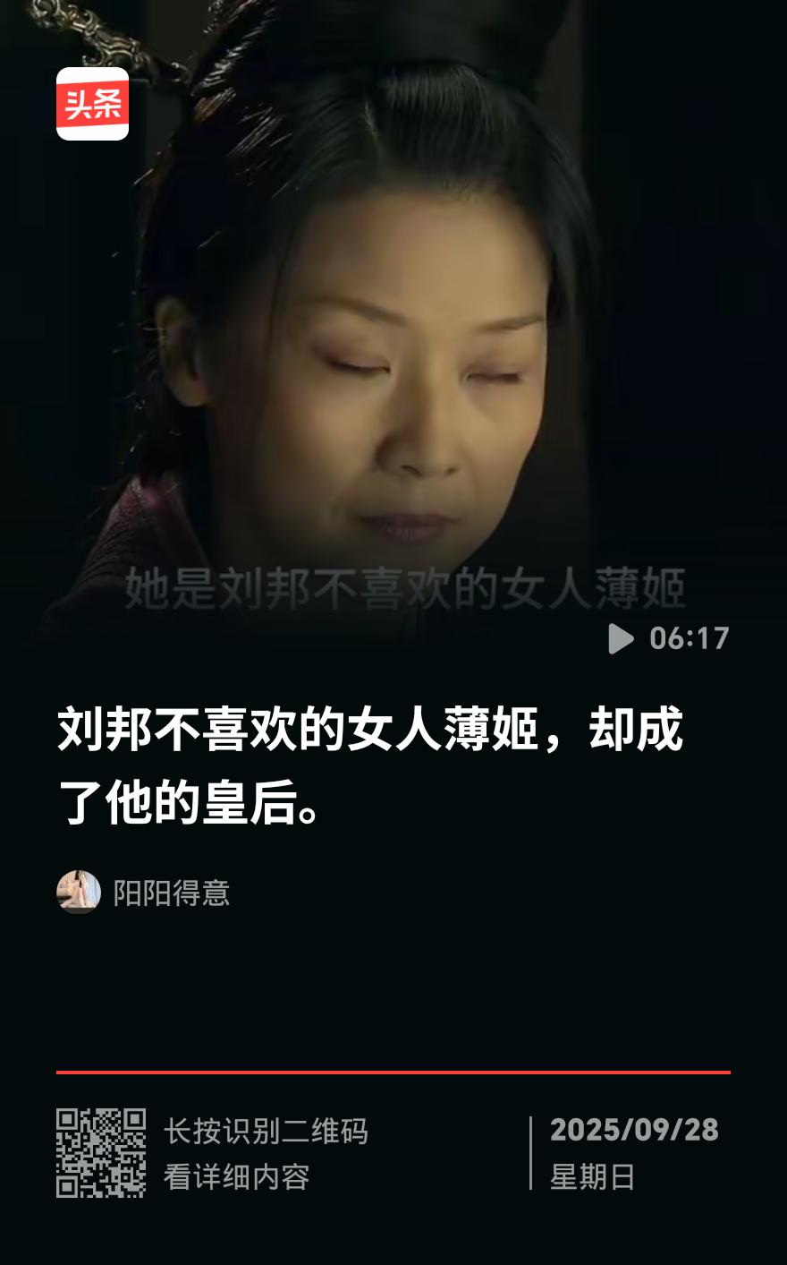 刘邦转身就走的丑妃,凭一句话获宠生龙子,低调到吕后都不杀她,儿子竟成千古一帝 刘邦踹开后宫房门时,脸拉得老长。白天跟大臣吵完架,本想找个顺眼的妃嫔松快松快,结果看见薄姬站在那儿,立马没了兴致——这女人是当年灭魏王豹时掳来的,长相扔后宫里都没人多看两眼。 刘邦抬腿就要溜,薄姬突然小声说:“陛下,臣妾昨儿梦到金龙盘肚子上,金光晃眼。”就这一句,刘邦脚定住了。他想起自己当年靠“赤帝子斩白蛇”拉起队伍,最信天命这套。龙是帝王象征,自己刚巧进这屋,难道是老天爷暗示? 当晚刘邦就留了下来,没几次薄姬就生下儿子刘恒。可她没像戚夫人那样争宠,反而带着刘恒在后宫“隐身”,不掺和妃嫔们的勾心斗角,每天就守着小宫殿带孩子,连刘邦的面都很少主动见。 刘邦一死,吕后把受宠的妃嫔往死里整,戚夫人被做成“人彘”,皇子杀的杀贬的贬。但吕后翻遍后宫,都没把薄姬放眼里——这女人太没存在感,儿子刘恒的封地代国又偏又穷,根本威胁不到自己。最后干脆放他们母子去代国,眼不见心不烦。 吕后一死,周勃、陈平杀尽吕家势力,选新皇帝时犯了难。刘邦的儿子要么死了要么跟吕家有关系,最后想起远在代国的刘恒。可刘恒不敢去,怕有陷阱。薄姬让他先派舅舅薄昭去长安探底,确认安全后才让刘恒进京,最后刘恒成了汉文帝,开创“文景之治”。 有人说薄姬全靠运气,可她要是没说那句“龙梦”的话,没忍住不争宠,没在关键时刻冷静,哪能有后来的富贵?你觉得她这一辈子,到底是运气好还是脑子太清醒?刘邦 汉朝皇后吕雉 刘邦之死