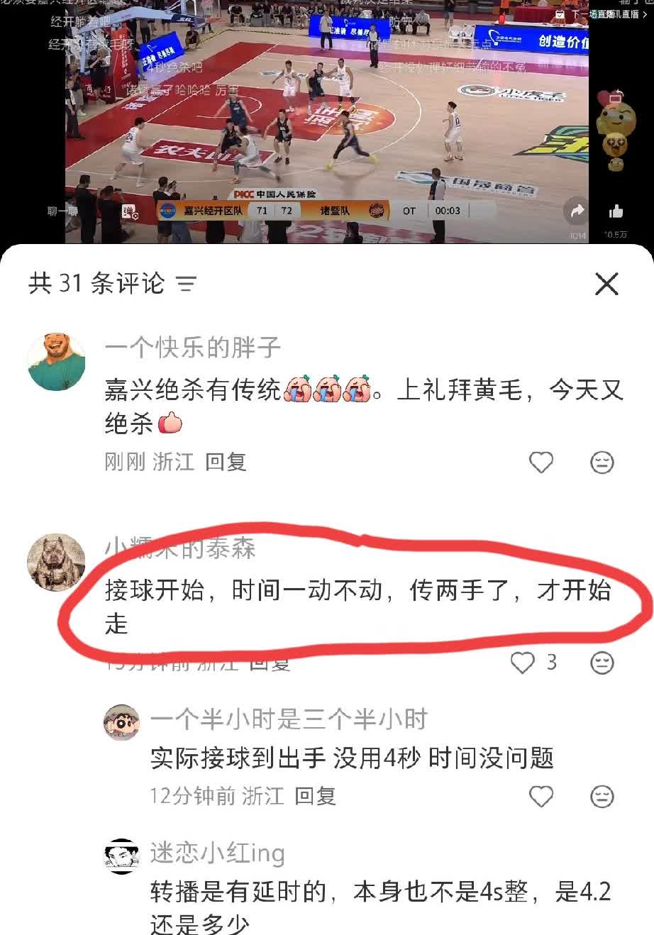 嘉兴经开主场最后四秒73:72绝杀号称“宇宙队”的诸暨,爆出本组比赛的一个大冷门…… 可貌似部分诸暨网友并不服气,他们好像从最后一球的比赛画面中找到了破绽,认为当时嘉兴经开发球之后很长时间都没有走表:“接球开始,时间一动不动,传两手了,才开始走”。 我去看了一下比赛画面,好像还真的是那么一回事。如果当时真的停表了,那说明最后嘉兴经开的进球是无效的! 网友们,大家不妨去看看那个画面,再发表一下你的观点?