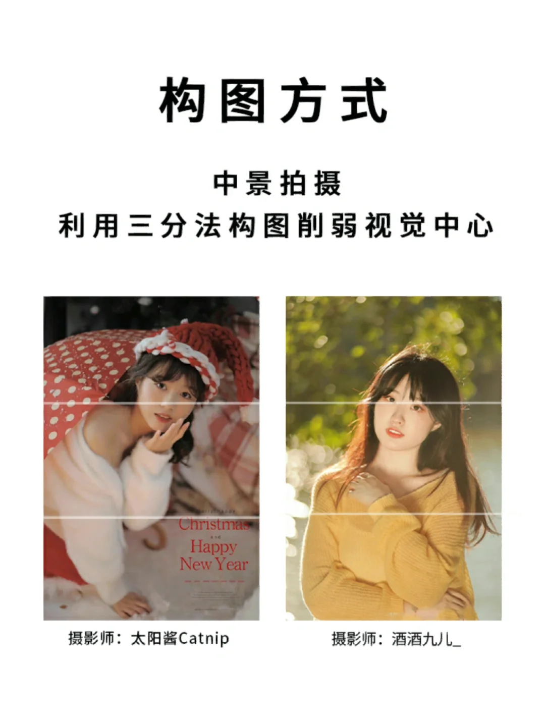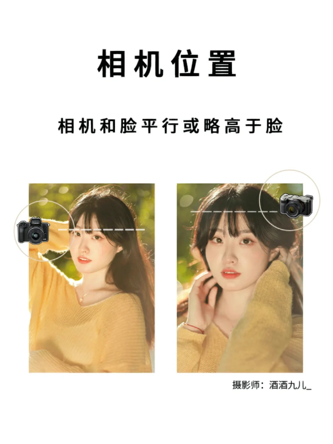 拍摄人物腰部以上(中景),把脸放在三分线的第一条线上,视觉中心就不会着重在脸上,还可以用手部姿势或碎发来修饰脸型✅