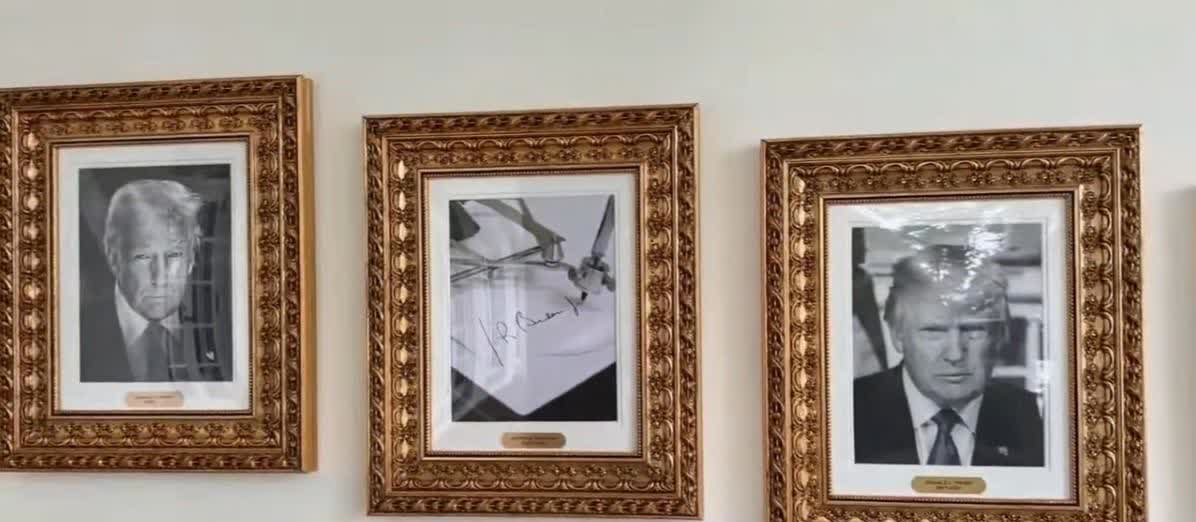 伤害性不大,侮辱性极强![偷笑] 据媒体报道,特朗普更换白宫“总统荣誉长廊”上