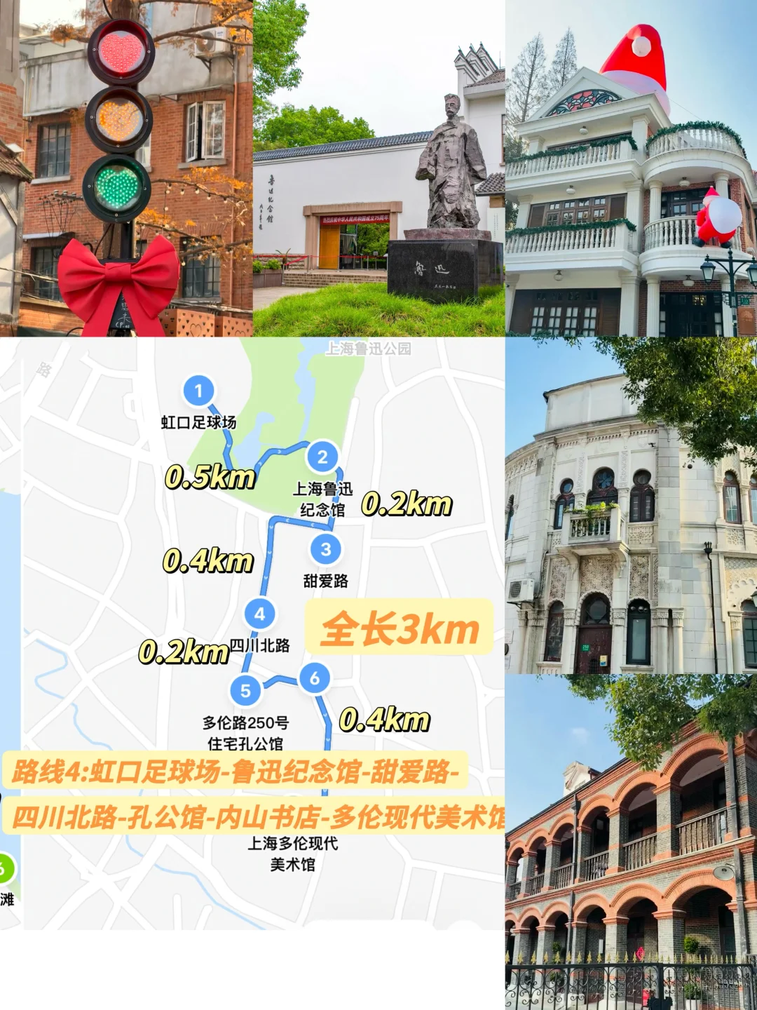 ✅路线4: 虹口足球场➡️鲁迅纪念馆➡️甜爱路➡️四川北路➡️孔公馆➡️内山书店➡️多伦现代美术馆