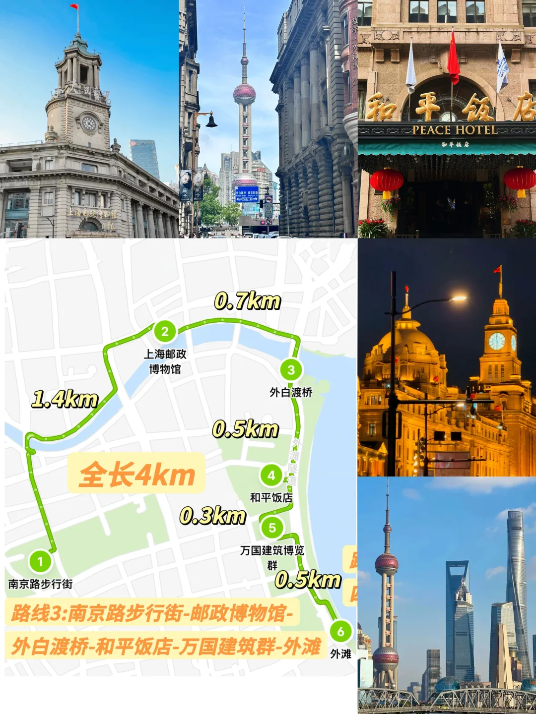 ✅路线3: 南京路步行街➡️邮政博物馆➡️外白渡桥➡️和平饭店➡️万国建筑群➡️外滩