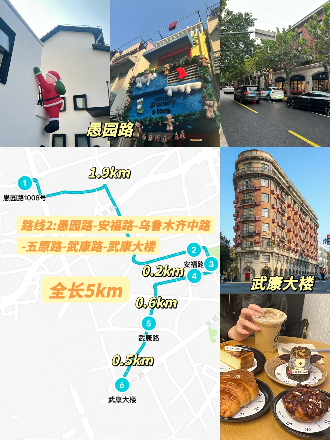 ✅路线2: 愚园路➡️安福路➡️乌鲁木齐中路➡️五原路➡️武康路➡️武康大楼
