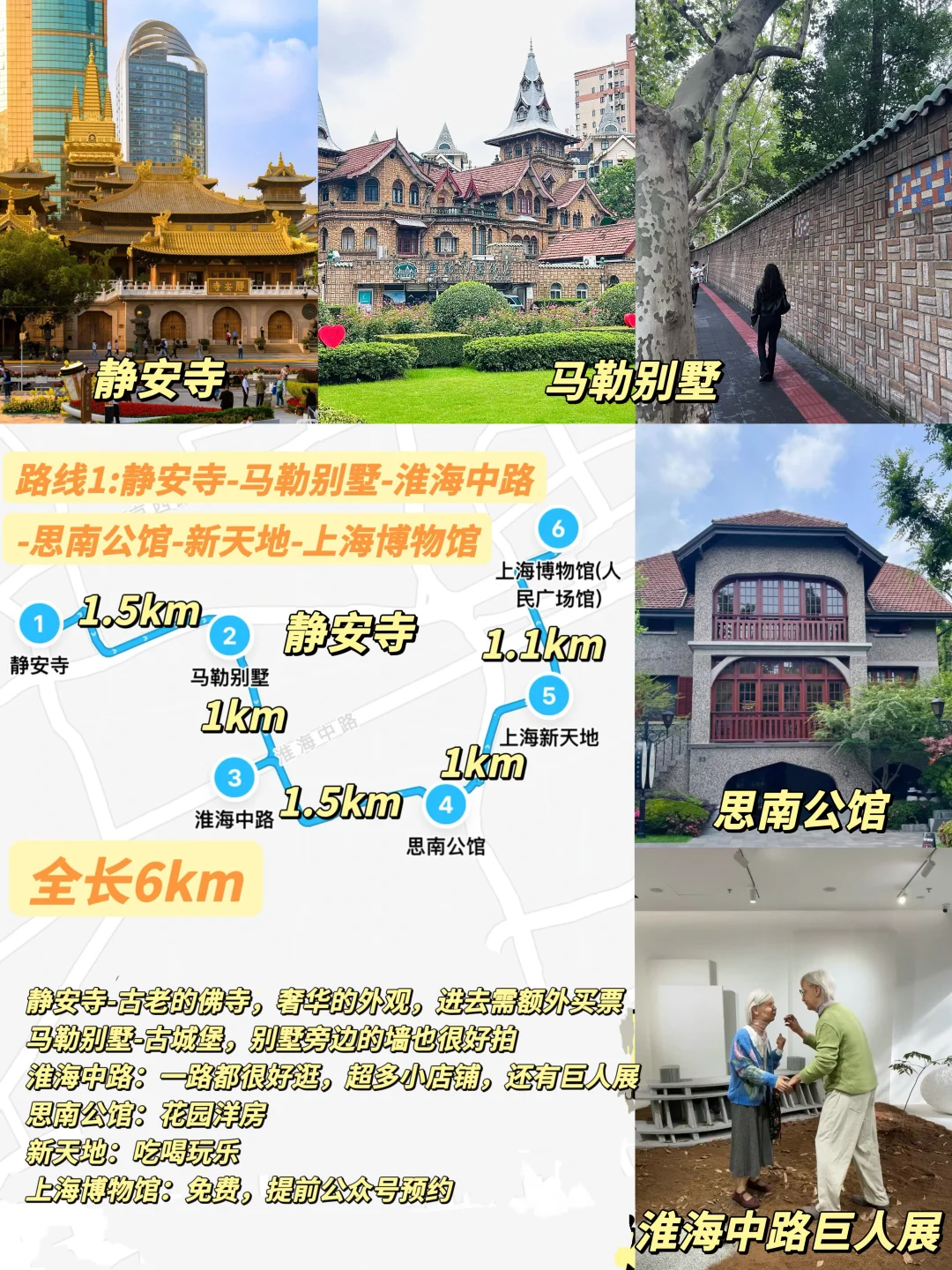 ✅路线1:静安寺➡️马勒别墅➡️淮海中路➡️思南公馆➡️新天地➡️上海博物馆(人民广场馆)