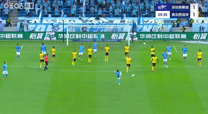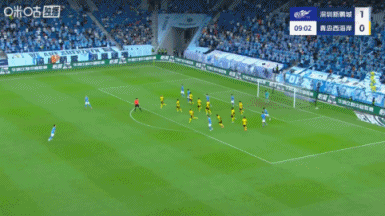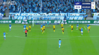 直播吧09月28日讯中超第26轮,深圳新鹏城vs青岛西海岸,比赛第10分钟,深圳新鹏城角球开出,张卫凌空打门踢呲,皮球直接落到对手脚下,戴维森长途奔袭破门,西海岸1-1扳平新鹏城。