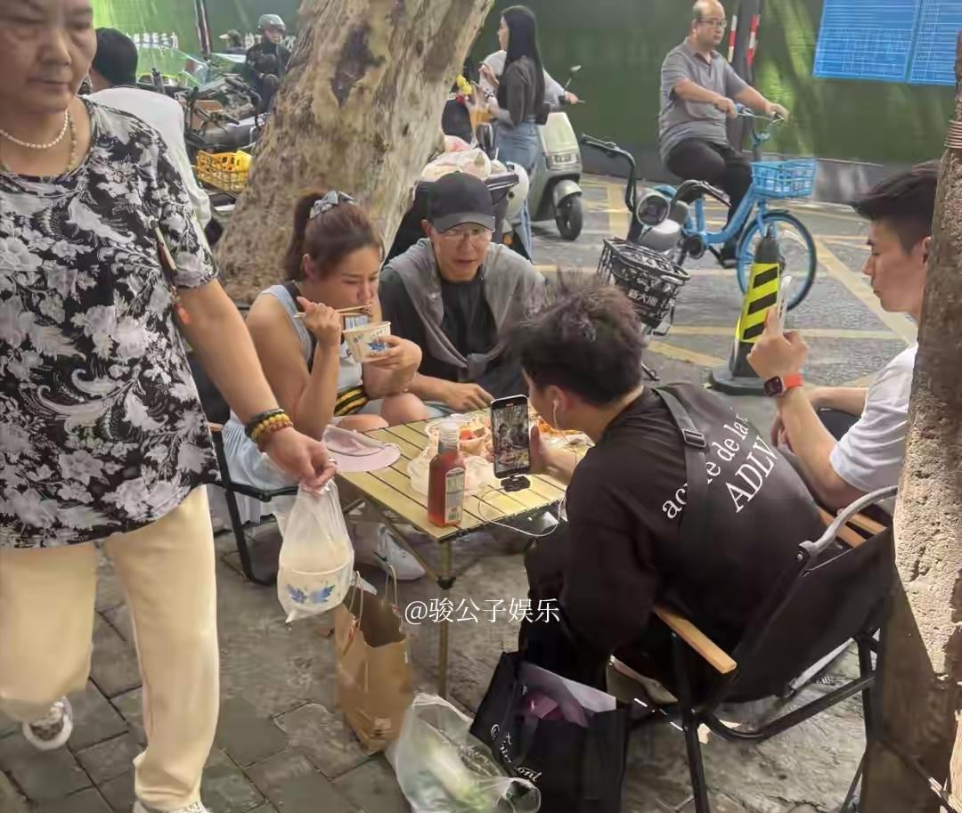 9月28日,刘畊宏与妻子王婉霏现身武汉街头,与工作人员一同在路边品尝麻辣烫,画面