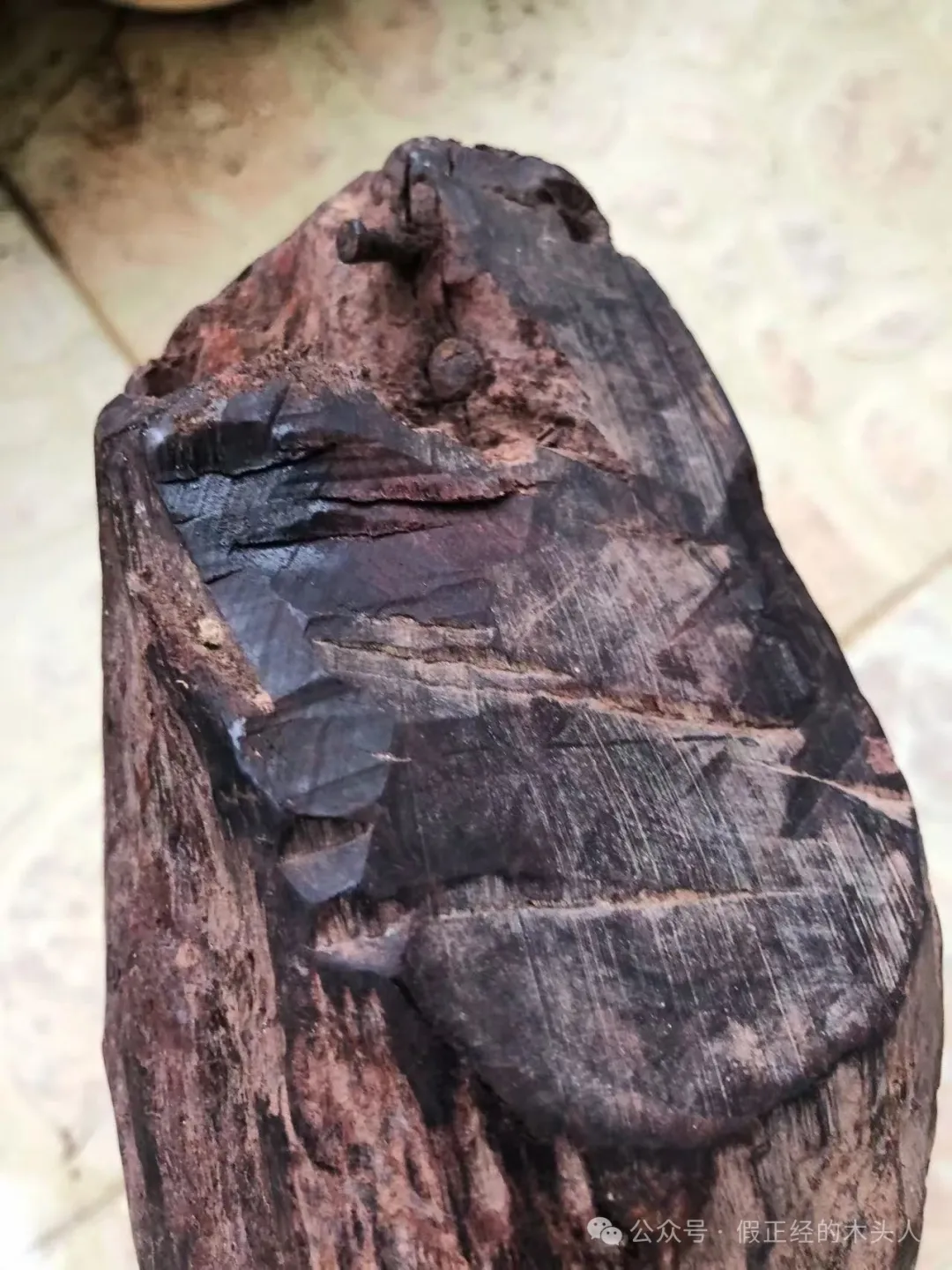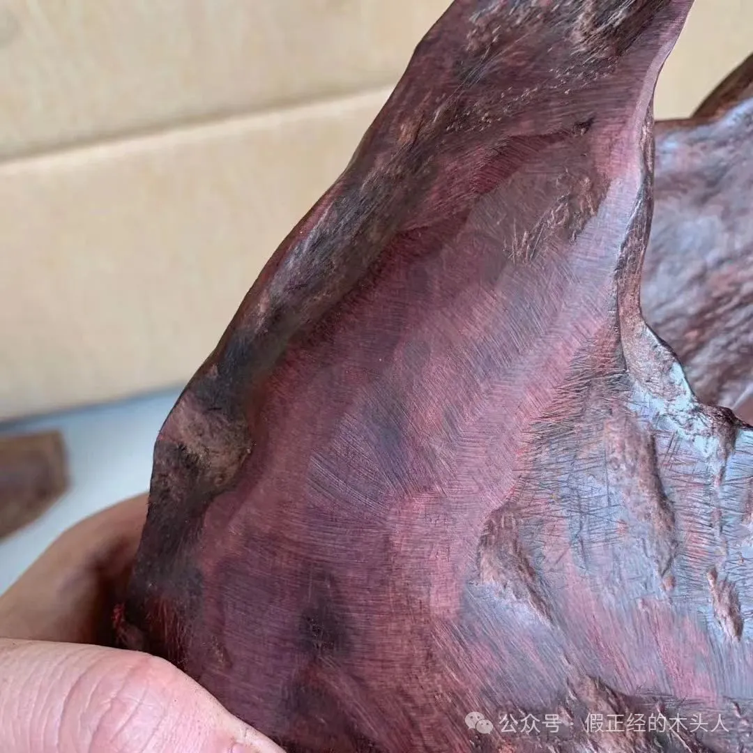 原材料状态下,反光呈现出的“黑中透紫”,这是正经海黄紫油梨的紫。