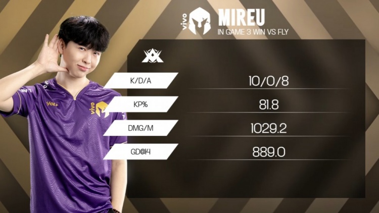 后期FLY轻松拿到大龙,经济领先9k,VKX下路大火收汁,FLY打出1换4,一波推平VKS基地拿到赛点。