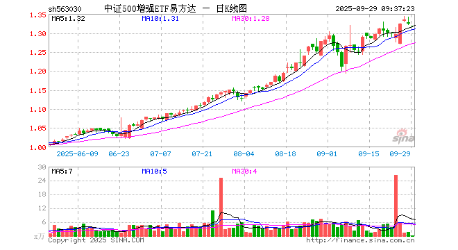 中证500增强ETF易方达(563030)业绩比较基准为中证500指数收益率,管理人为易方达基金管理有限公司,基金经理为官泽帆,成立(2023-02-17)以来回报为32.00%,近一个月回报为4.52%。