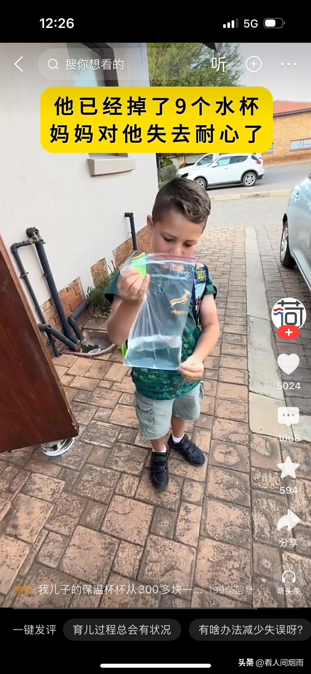 国外一个家长的做法,我们也可以学一下! 小孩哥从背书包起,已经弄丢了9个水杯了。 一个小孩用的水杯都是好几百,我不是夸大哦,很多家长买过水杯的,你们深有体会。 丢了就又得花大几百去买一个。但是小朋友不一定珍惜,于是,直接给了一个水袋。 这下小家伙也懵逼了,从此可能再也不会丢杯子了。