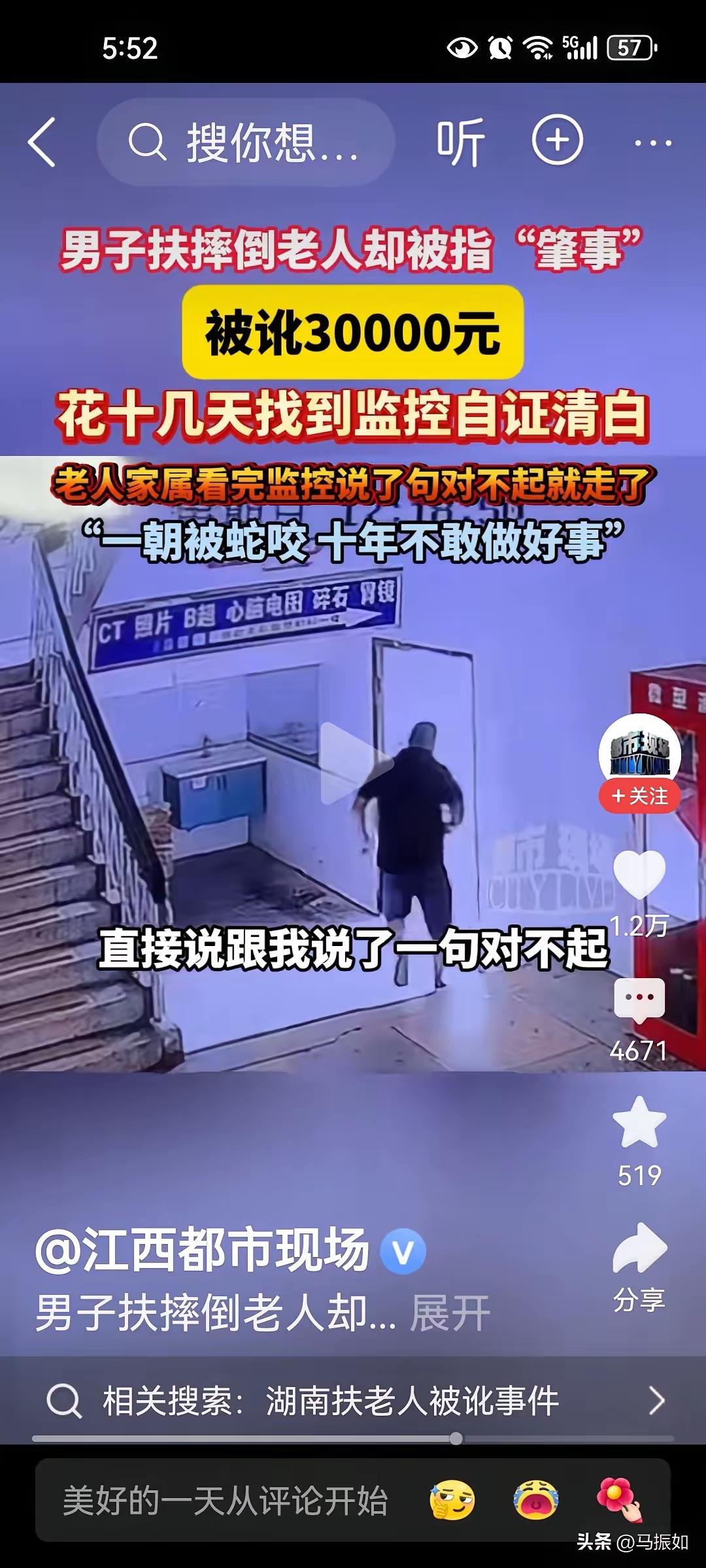 男子好心搀扶70岁老人摔倒,反遭诬陷敲诈,被推上热搜。 男子见义勇为,反被诬陷敲诈勒索30000元,此视频传遍全网,让好男人心酸委屈欲哭无泪,天下竟有如此没良心的人存在,男子为了证明自己的清白,查询10多天寻找证据,终于功夫不负有心人,找到证据,证明自己的清白,摔倒家属说不好意思道歉弄错了,证据不足,不再追究男子相关责任。 信息来源:江西都市现场 网友评论: 诬陷者除了在事发地连续十天公开道歉,还要倒赔10万,作为对被冤枉者恢复名誉并赔偿精神损失! 拿到视频证据了,假装没有,让诬陷者闹到法院在拿出来 对造谣污蔑做好事的人,不加以严惩,将来谁还敢做好事儿? 如果是我不但不扶,还得躲远点,死不死和我没关系,最主要的是,万一有传染病,赔他们死多冤 应该提起公诉:这类事件严重损害社会公德,自诉可以放弃,但公诉不可以放弃!