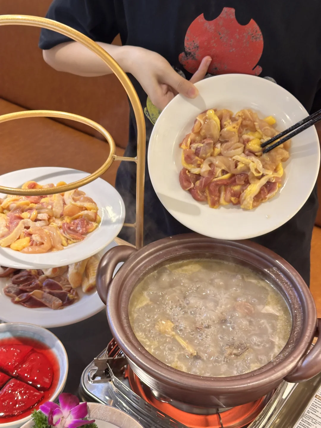 在广东湿气重?那你一定要试试这家的招牌抽湿鸡! 半只鸡浸透古法药膳的精华,吃一口从胃暖到心,祛湿又滋补,广东姐妹都懂的养生密码✨ 店里的烧汁堂煎雪花大生蚝我好❤️ 现炒现做,蚝肉肥嫩多汁,烧汁入味又不抢鲜,一口一个太满足;话梅猪手皮酸甜爽脆,啃起来超上头,胶原蛋白直接拉满~ 还有怀旧红豆冰和黑芝麻糊冰沙 老式做法的红豆冰沙绵密清甜,黑芝麻糊冰沙浓郁醇厚,吃完鸡煲来一杯,解腻又治愈,这搭配绝了! 📍叁烎抽湿鸡·养生鸡煲·私房粤菜(东园店) 🚇南园街道巴登社区巴登村4号东园路44号