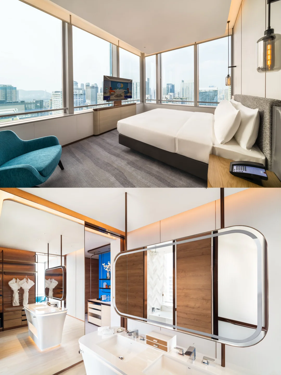 🏠客房体验:房间设计长在审美上!简洁线条撞色超有格调,摩登艺术装置随手拍都是大片,重点是设施太懂懒人: