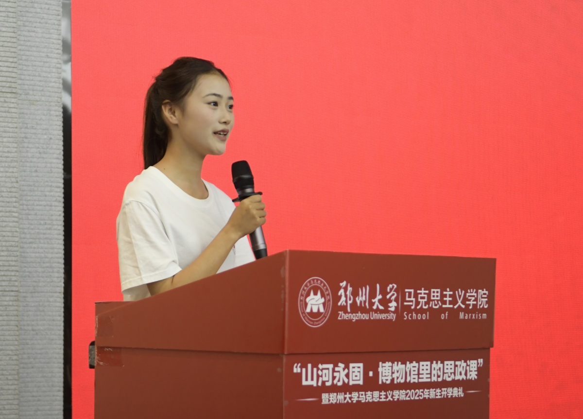 教师代表郭文荣以一名“老马院人”的身份,言语间满是对后辈学子的关爱与期待。本科生新生代表冯美卿用清脆而坚定的声音,表达了从“知”到“行”的求索之志;研究生新生代表吴楠楠以沉稳的视角,分享了在学术道路上“钻深研透”的决心。