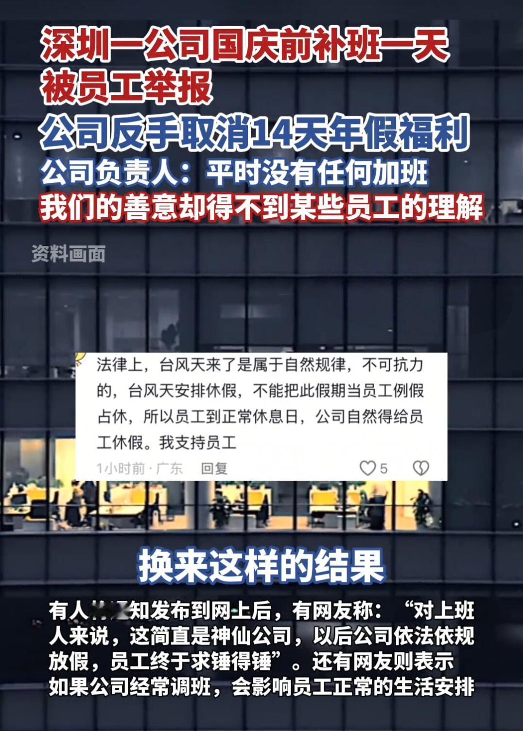 深圳有家公司,因为台风停工,让员工周六补一天班,结果被举报了。 公司气不过,