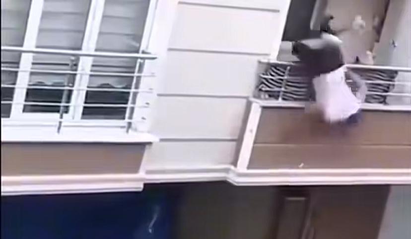 我的天呐,吵个架闯下大祸了!楼下有人与楼上男子吵架,男子气急败坏扔东西,由于护栏
