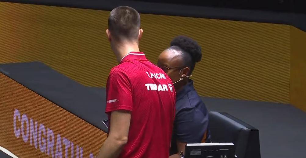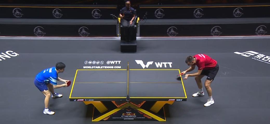 奇葩!林诗栋3:1取胜, 对手不服,请求鹰眼了 最后判林诗栋赢。 前两局林诗栋大比分2:0领先, 我以为小石头会3:0轻松结束战斗, 没想到第三局, 打的很是激烈。 开局林诗栋0:3落后。 直到追到了9:9平, 关键球, 林诗栋打的很坚决。 12:10拿下。