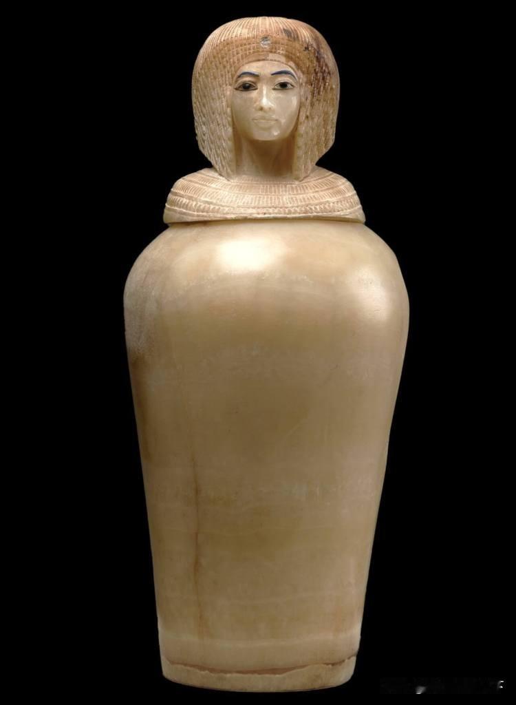 3300年前的埃及雪花石膏卡诺匹斯罐,酷似玉石!这个罐子属于第十八王朝的基娅王后,发现于 KV55 号墓中,年代为阿玛纳时期,约公元前 1349-1330 年。罐盖上精美雕刻的皇家假发图案尚未得到正式确认。其面部轮廓、修长的鼻子、深邃的眼眸和性感的嘴唇,都表明它是阿肯那顿统治后期的遗物。罐子和盖子在古代曾被改动,因此很难辨认原主人的身份。这张引人注目的脸代表了阿玛纳的一位皇室女性。她那重叠的卷发发型被称为努比亚假发,只有成年人才会戴,在阿肯那顿家族的女性成员中很流行。额头中央的洞孔曾固定着一条单独雕刻的眼镜蛇上身,其尾巴在假发顶部清晰可见。这种被称为蛇形头饰的皇家守护神,只有国王和王后才会佩戴。雪花石膏是一种材料,为块状石膏状矿物。几个世纪以来用于雕塑、雕刻及其他装饰品。一般是雪白色,半透明,并能人工染色;通过热处理它可变成不透明,外貌类似大理石或者汉白玉。埃及和中近东的古代雪花石膏一般是方解石,主要用于室内艺术品和雕塑,在室外则保存寿命有限。