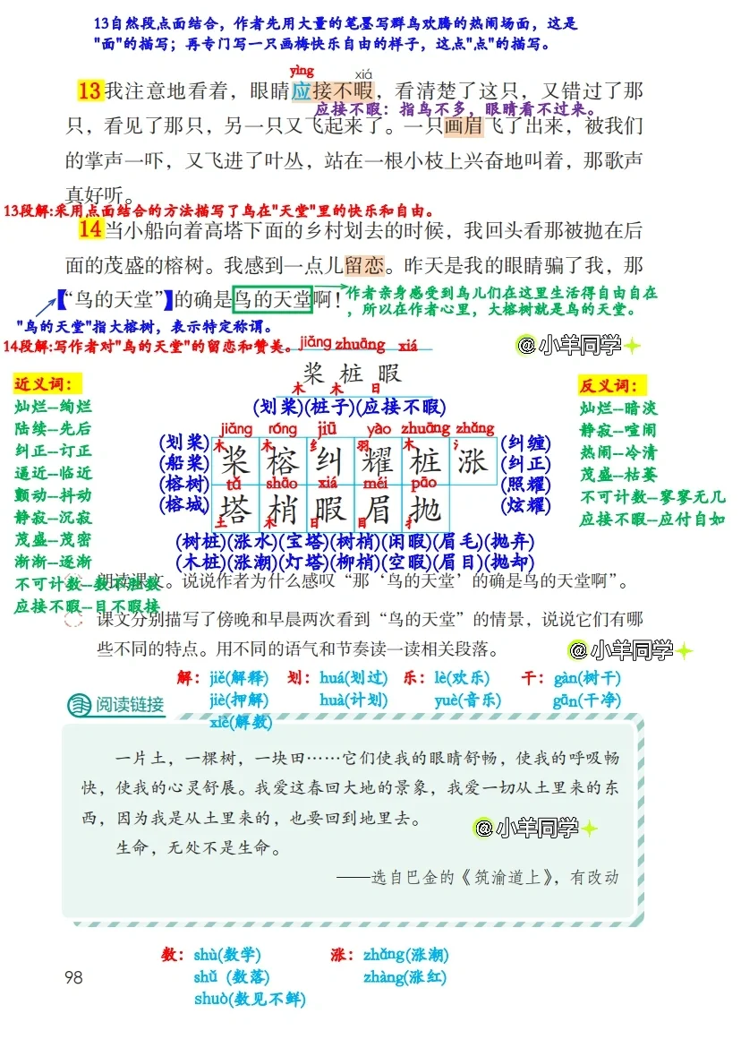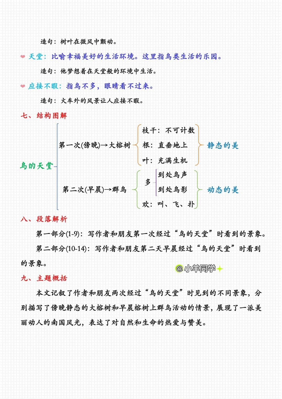 本文记叙了作者和朋友两次经过“鸟的天堂”时见到的不同景象,分别描写了傍晚静态的大榕树和早晨榕树上群鸟活动的情景,展现了一派美丽动人的南国风光,表达了对自然和生命的热爱与赞美。