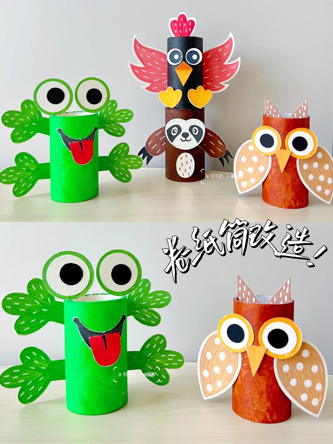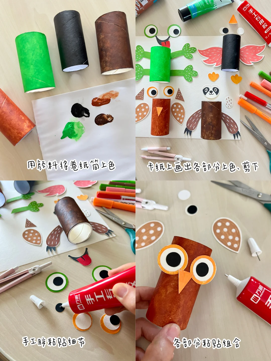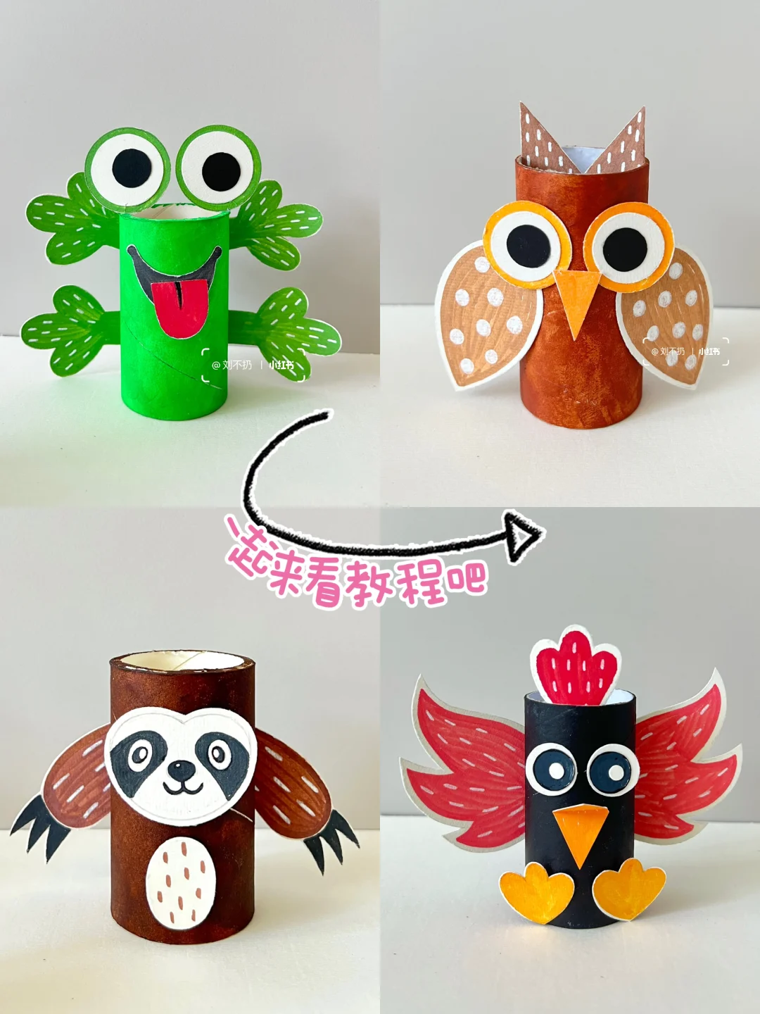 家里用完的卷纸筒别再扔啦~ 随手改造一下就能拥有超治愈的动物朋友们… [星R]今日成果: 大眼青蛙🐸 活力小鸟🐦 呆萌猫头鹰🦉慢悠悠的树懒🦥 [星R]材料很简单: ✅ 卷纸筒 ✅ 硬卡纸/丙烯颜料、丙烯马克笔、高光笔 ✅ ✂️剪刀 、圆规、调色纸、万明手工胶 (粘得牢、速干不拉丝、用起来超顺手,细节全靠它!) 具体做法可以参考👀上面教程哦~ 多做几个排排坐,可爱爆表[害羞R][害羞R][害羞R]