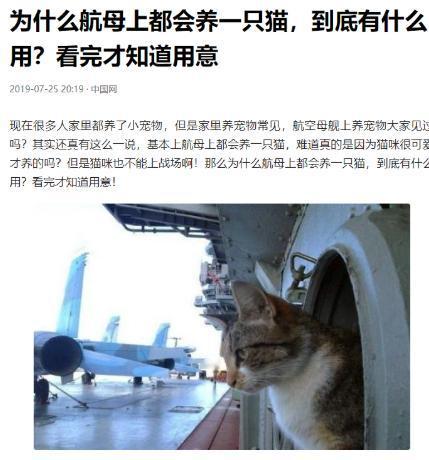 航母上为什么要养猫?是为了抓老鼠?那你就错了,现在航母上的猫可不是为了抓老鼠,而