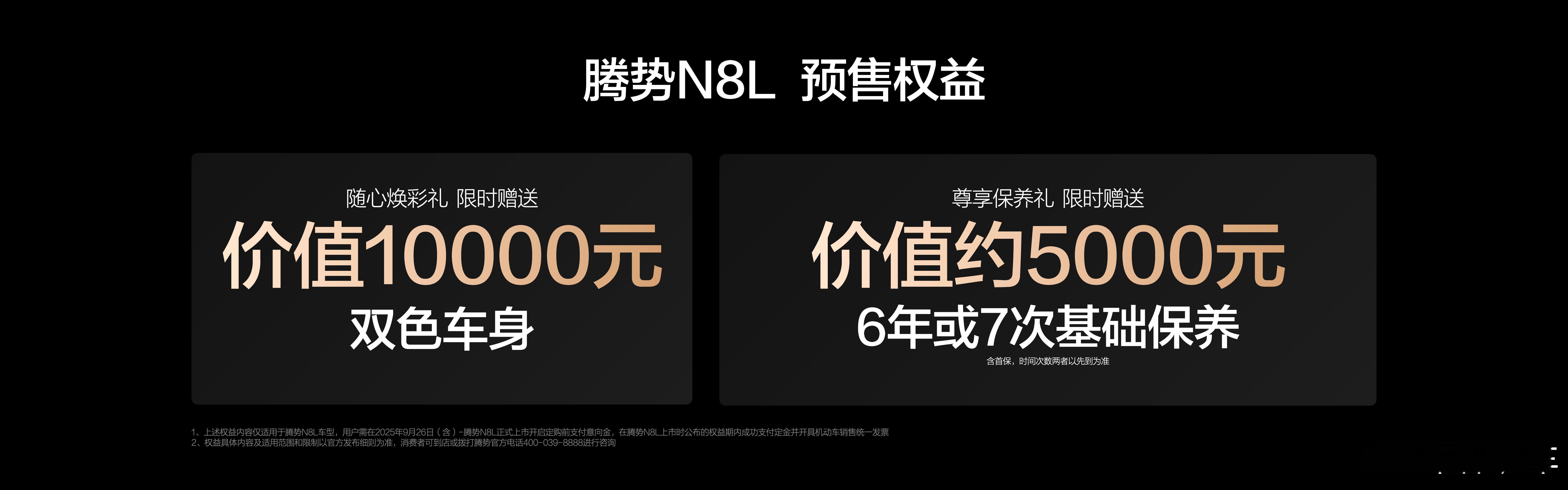 腾势全新大六座SUV N8L预售,31.98万起!专为家庭造——第三排能调能加热,跟二排一样舒服,49处储物+隐藏暗格,后备厢能装下全家行李;3.9秒破百、刹车稳,云辇-A悬架滤震,转弯才4米5,窄路好停。