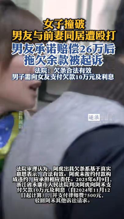 不作死就不会死!浙江一女子偶然发现男友竟和前妻同居,还因此遭到殴打,男友承诺赔偿给她26万,谁料给了16万后,男子竟耍起了无赖,不肯给剩下的10万,女子多次索要无果后,无奈将他告上法庭,法院这样判了! 据逐浪新闻9月27日报道,在一起案件中,一张写着十万元的欠条成了法庭焦点。 事情的起因是汤某与前妻离婚之后,没过多久他就有谈了一个女朋友,小苏(化名),两人是通过朋友介绍认识的,随后两人因为情投意合,就在一起了。 然而就在2014年的时候,两人之间因为了一点事情发生了口角争执,随后汤某便撂下一句话:“双方都冷静一下”,就会回到了自己家。 汤某走了之后,刚刚吵架的画面在小苏的脑海里面翻涌着,这时候小苏觉得自己做的有一些过分了,于是就赶紧换了衣裳前往了汤某的家。 令她没想到的是,给她开门的竟然是汤某的前妻,两人虽然没有了法律层面的关系却一直都在同居,看到这之后小苏更加的生气了,当场就给汤某对峙了起来。 就在争吵的途中,小苏遭受到了殴打,见状小苏立马就想要报警维护自己的合法权益,不料这时候汤某提出给小苏二十六万元作为补偿,私了这件事情。 那时候汤某说自己没有有太多的钱,所以就将剩下没给的十万元以欠条的形式写了下来。 然而过了好长时间了汤某也不还剩下来的钱,小苏多次催促没有结果之后就直接将汤某告上了法庭,要求他除了给欠条上的钱之外,还有补偿利息。 随后在法院审理的过程中,汤某也诉说了自己的委屈,说自己当时就是为了哄一下小苏,所以当时的承诺没有任何诚意,并不能说这个就属于借条。 但经过法院的调查之后认何这张欠条是真实存在的,应负相应的责任。最终法院判决汤某不仅要归还未支付的十万元,还需要支付这么多年的利息以及律师费。 事实证明,当一个人连亲笔签下的承诺都不当回事,感情已经无可挽回,剩下的就只有法院的裁决。 这件事也给所有人敲响警钟,口头承诺或许能反悔,但白纸黑字签下名字,就意味着必须负责。当诚信缺席时,法律就是最后的底线。 对此,你还有什么看法呢?