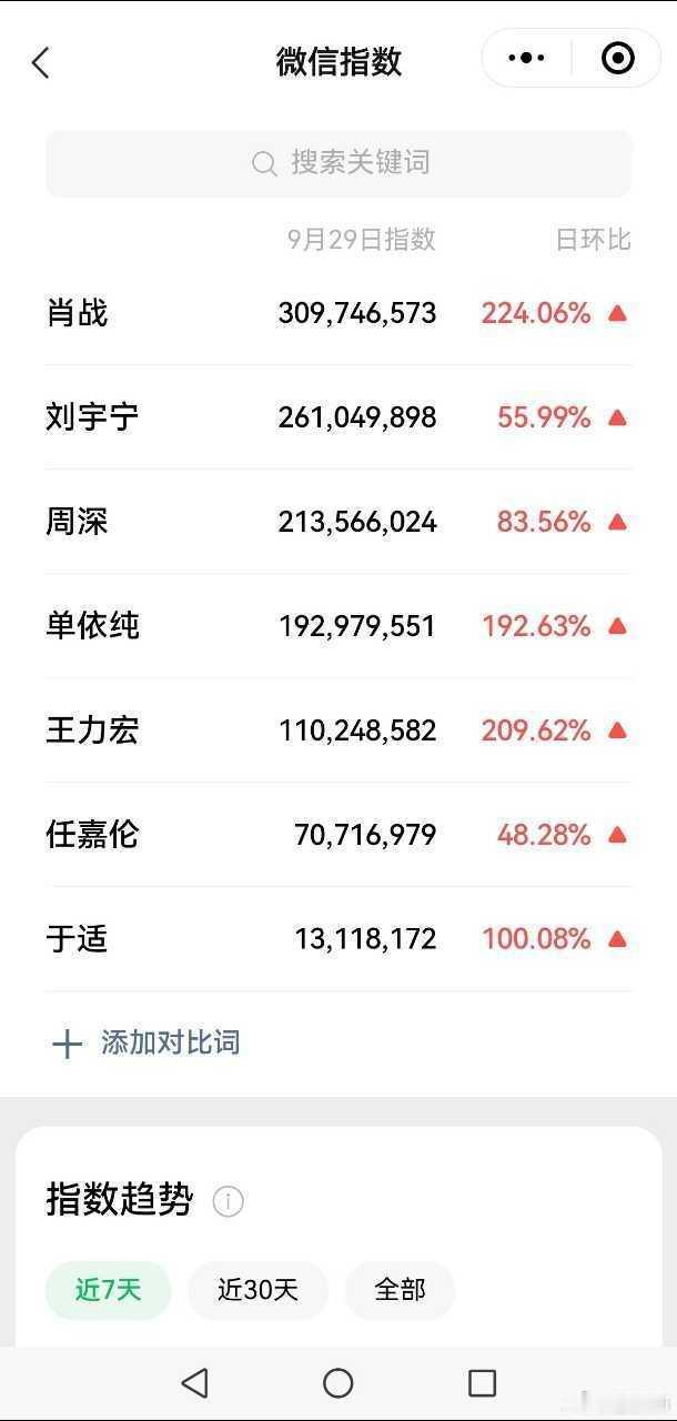 总有人黑巨星肖战,利用时间差尬嘲,那就让我们看一些真实的数据吧!肖战的湾区升明月舞台11点才出来,到第二天29号只有1个小时,数据发酵需要时间,所以数据峰值会落在29号,29号肖战百指断层第1达到4.4万,抖的关键词指数3.5亿,抖指第一849万,微指第一3亿,舞台微指第一6千万,微博话题直接爆了,出场效果堪比一部大爆剧,还带着内娱的活动上了世趋12肖战工作室拍的红海王力宏夸肖战