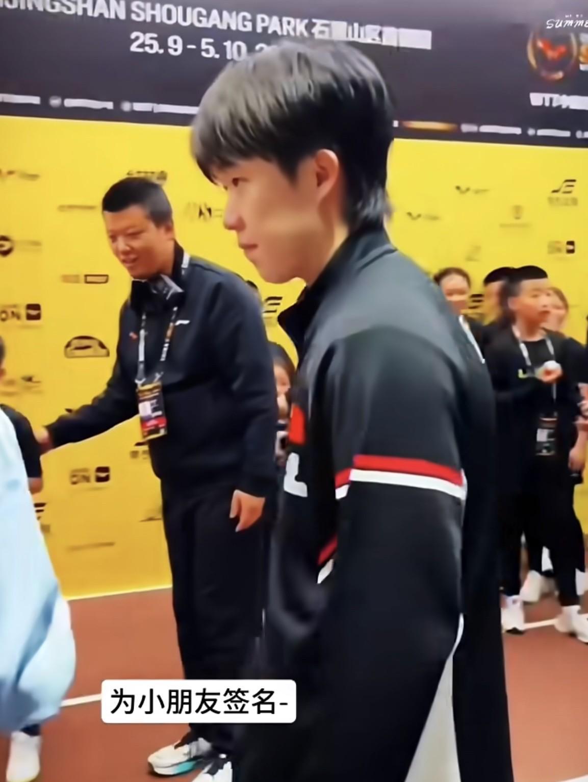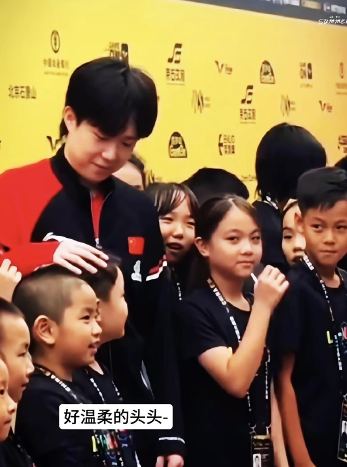 漂亮的“大朋友”和一群可爱的“小朋友” 刷到楚钦赛后和球童们的正面合照啦!照片里他跟一群小球童站在一起,看着就特别温柔,其实他每次和小朋友合影都很温柔。 楚钦还宠溺地摸了摸小海螺的头,看到海苔哥哥的眼神,他好爱弟弟啊,王皓家俩孩子感情真好!海螺这孩子也太幸福了吧,我都跟着羡慕!小朋友们不但跟大头哥哥合了影,还得到了大哥哥的亲笔签名,脸上的笑就没停过。 其实大头自己也超开心,混在一群小朋友堆里,活脱脱一个大朋友,看着特别可爱。他脸上满是笑容,一点都不装,就是那种跟小朋友待在一起,打从心里冒出来的高兴,真是个特别亲切的大哥哥。不得不说,王楚钦人气太高了!大朋友小朋友都喜欢他。