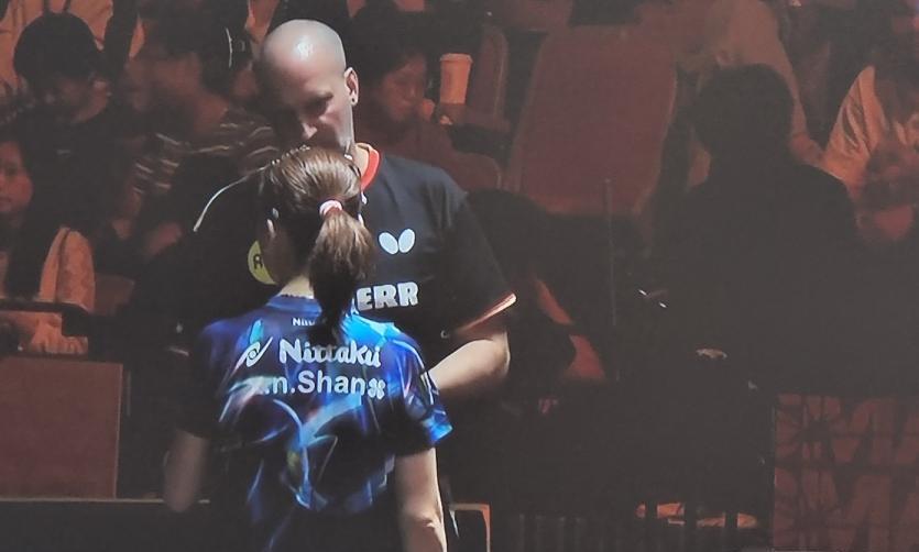 把球看紧张的,不只是球迷,这带队员的师父,绝对也是首当其冲! 陈幸同与单晓娜的这场,马俊峰指导偶尔就会拧开瓶盖喝水。这样的场景经常出现,就连响当当的马琳,也有好多这样喝水的场面! 就算身经百战,但真到了赛场,是人都会都会紧张的时候。打球的,看球的,都会有,不紧张,那就不是乒乓! 大比分2:0领先,感觉场外的马指导比场上的陈幸同都更急于快速拿下比赛。然而事与愿违,没有退路的单晓娜反而打开了,正手频频得分。同同接发和相持都很被动,第三局丢掉了。 第四局陈幸同换了发球的站位,同时接发也有了变化。比分一直领先,10:5拿到了赛点。此时场边的马导更加专注地盯着场上的一举一动,当单晓娜连救2个赛点时,马导果断叫了暂停。 必须把胜利牢牢握在手心,这个暂停,其实就是加油重启的开始! 结果,如人所愿!