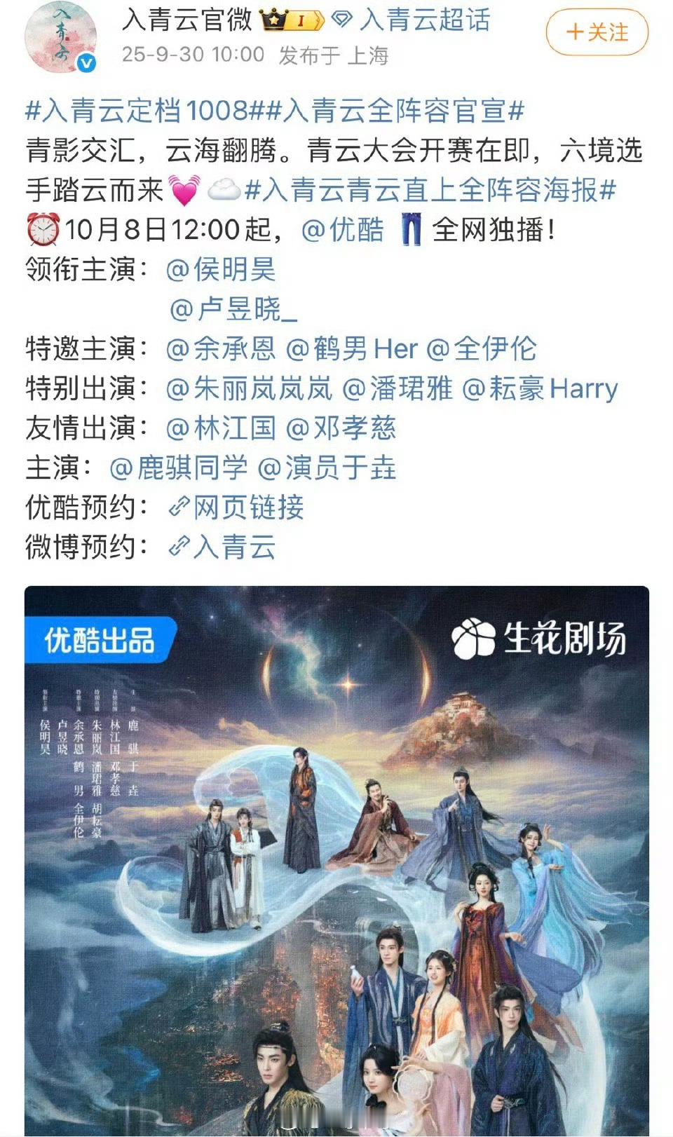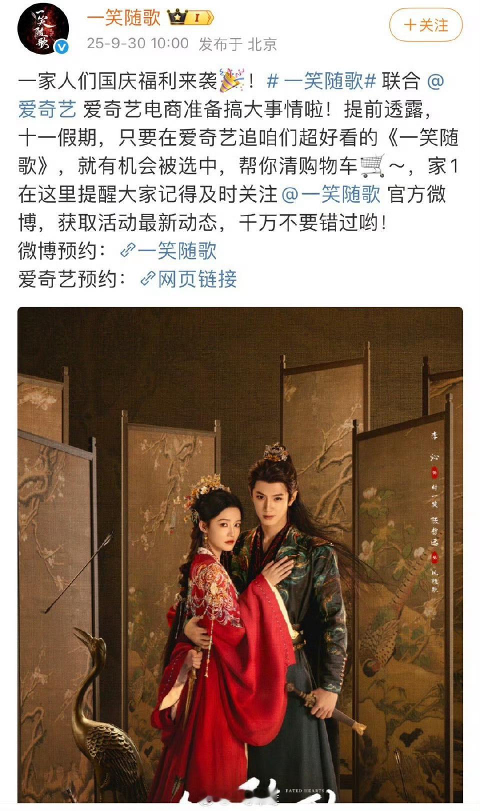 10月初的三部剧定档宴遇永安1009入青云1008一笑随歌1002
